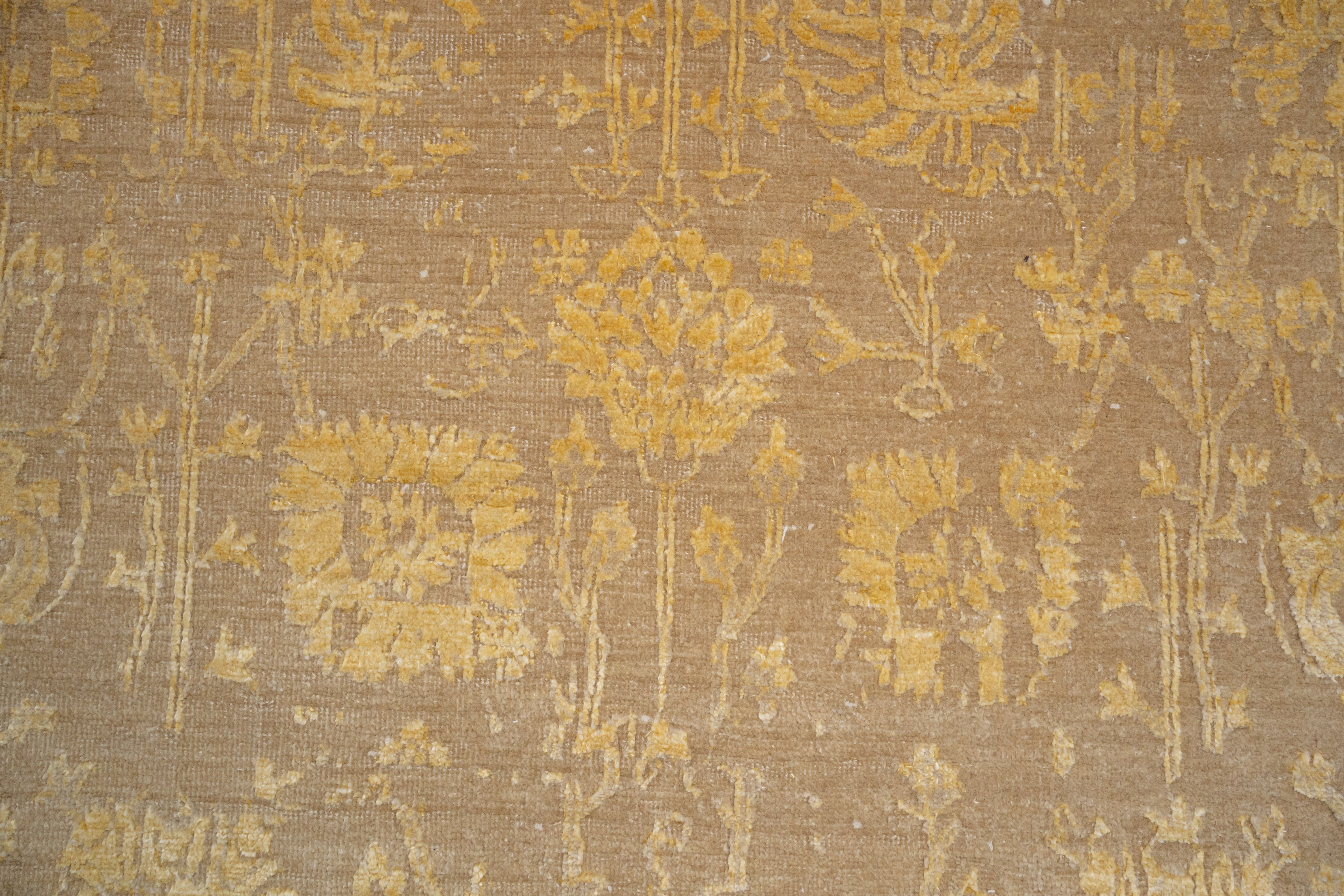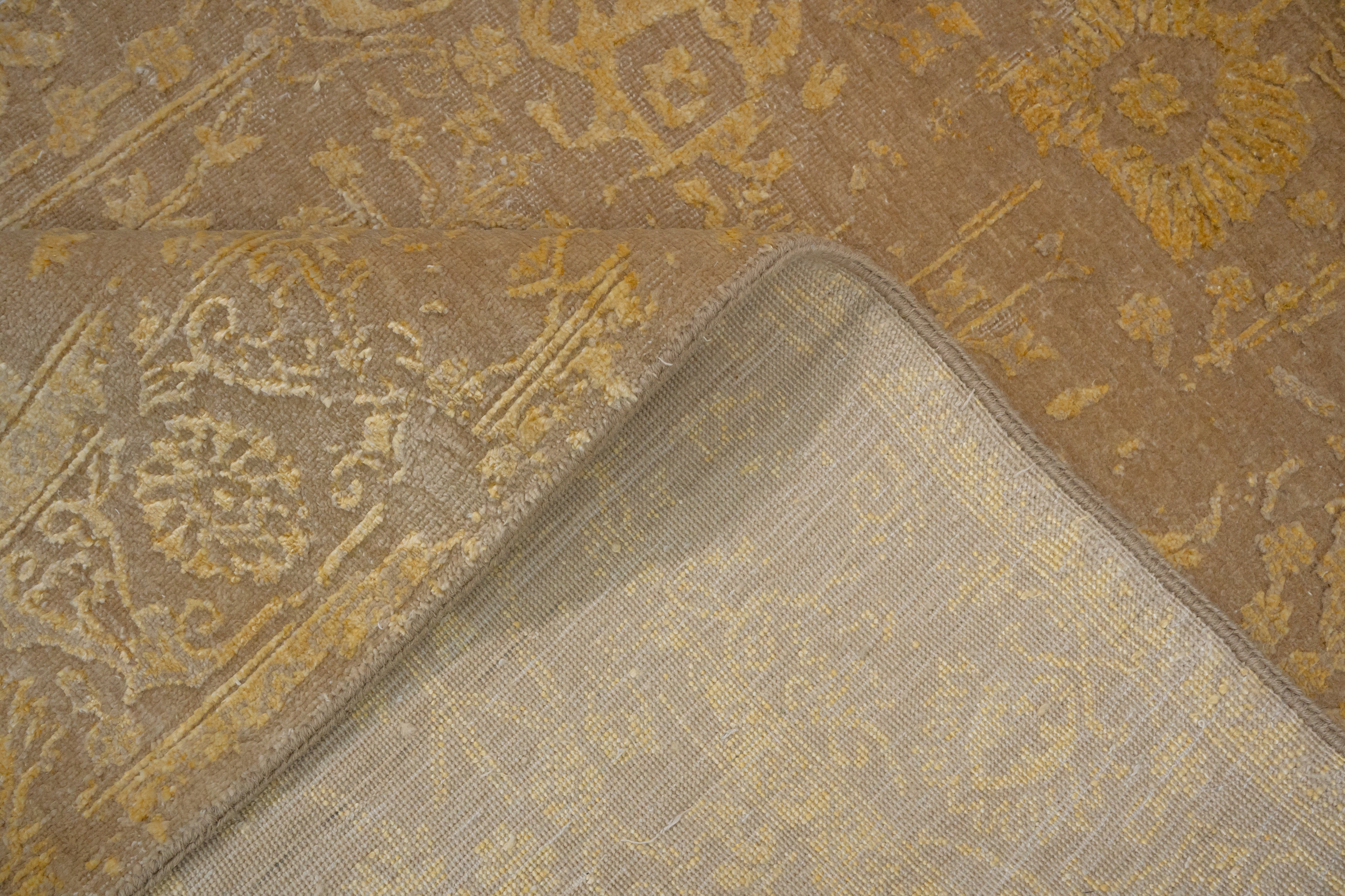 The DIA-10 VASE 3 rug is a celebration of timeless artistry and refined elegance. Hand-knotted in a regal Bronze & Gold palette, this piece radiates warmth and sophistication. The intricate VASE 3 design draws inspiration from traditional motifs, while the wool-viscose blend ensures both durability and a subtle sheen, making it a perfect fusion of classic and contemporary.