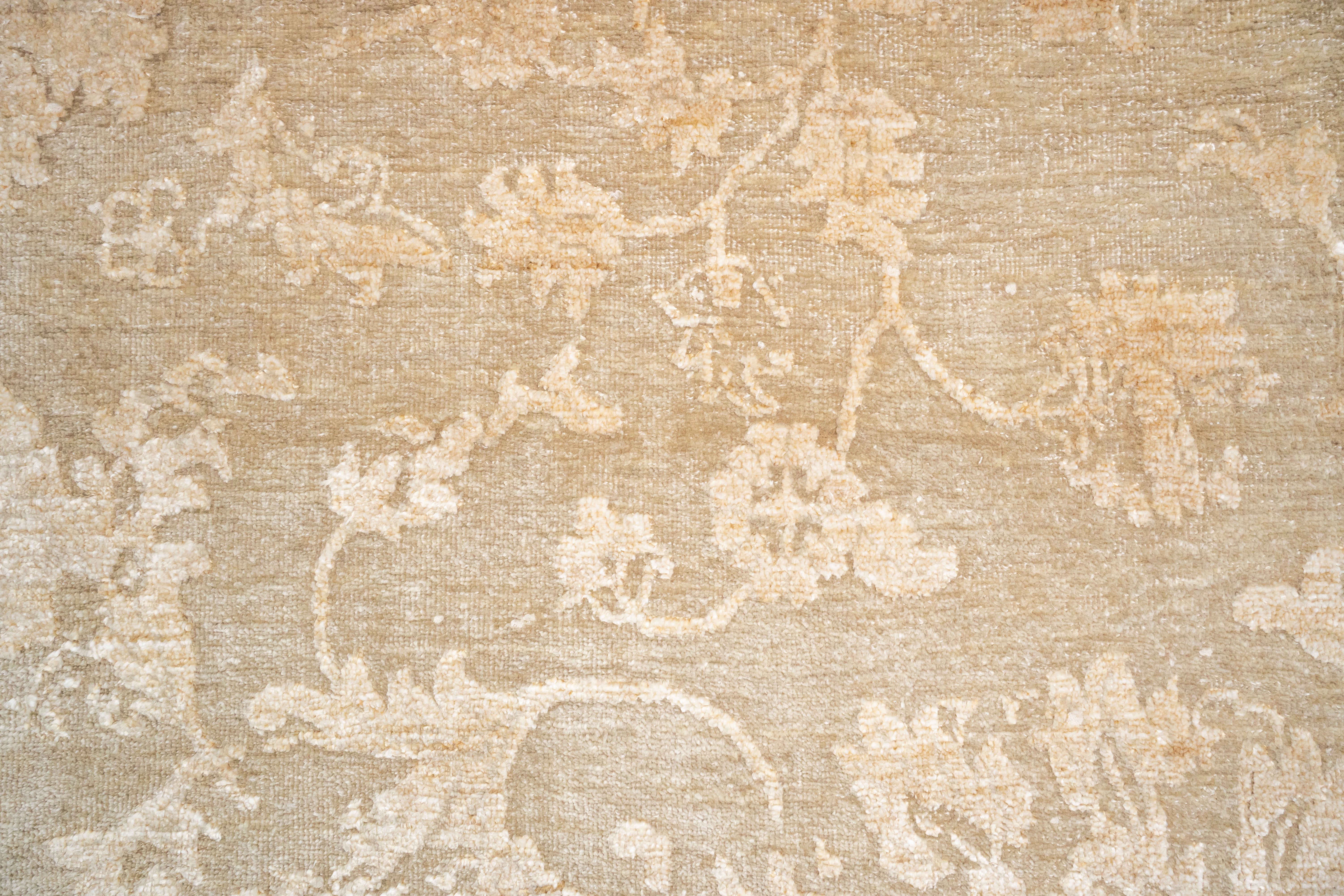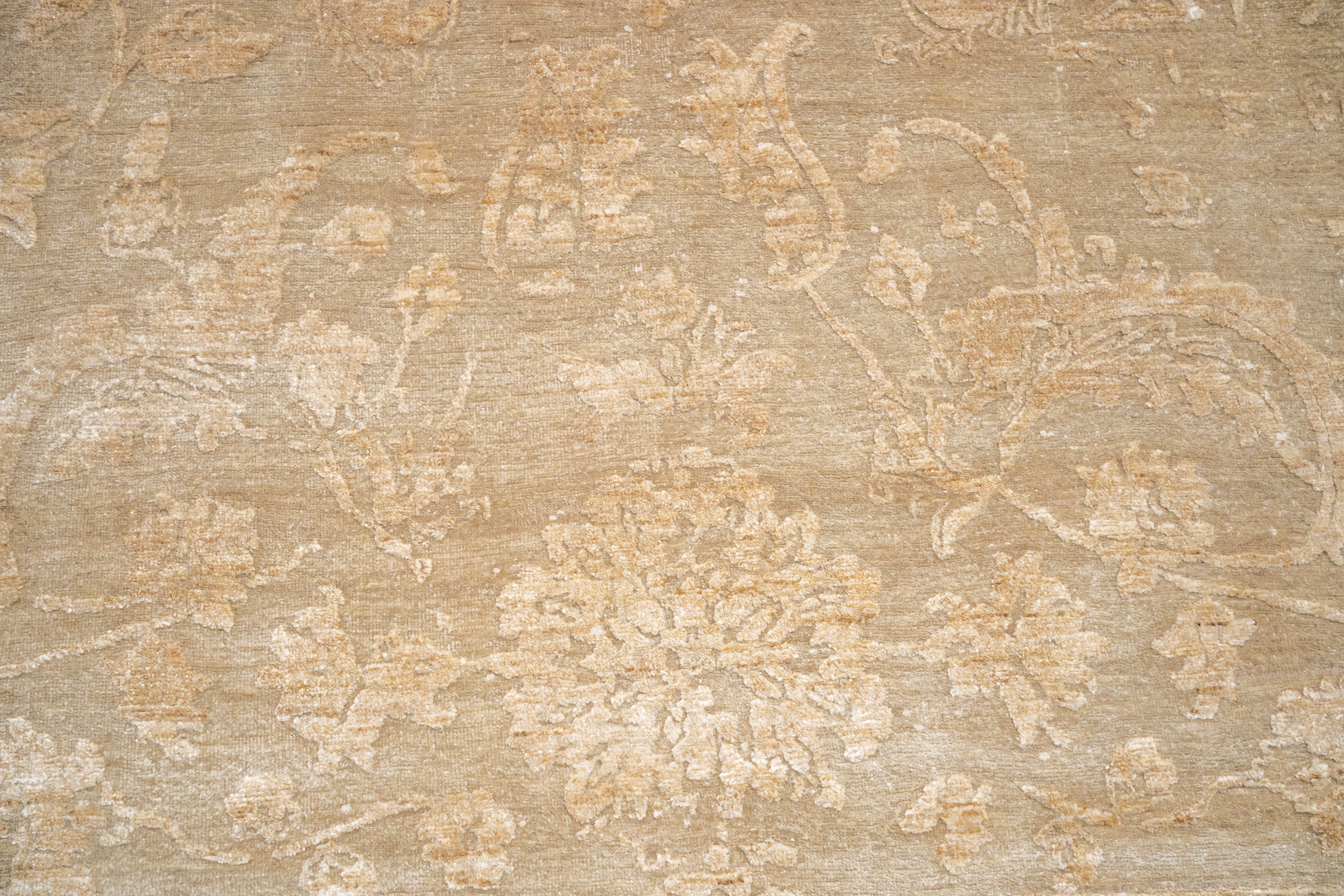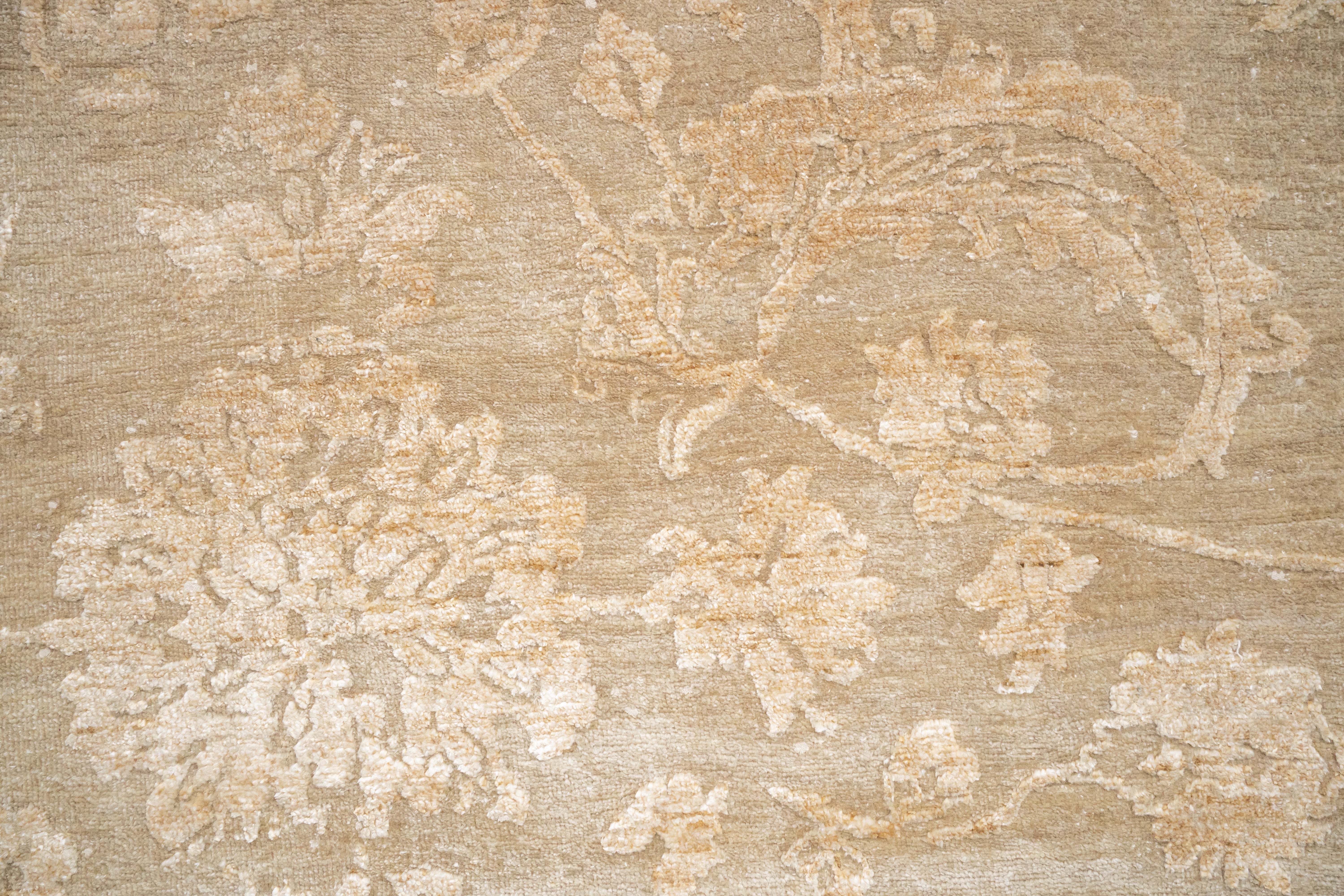 The DIA-1053 JK-A carpet offers a refined modern aesthetic with its Tan & Desert Sand tones, creating a warm yet contemporary foundation for interiors. Hand-knotted in Wool & Viscose, it provides both durability and a soft, lustrous finish. Its 10 x 14 ft size makes it an excellent choice for expansive living areas, infusing spaces with understated sophistication and natural warmth.