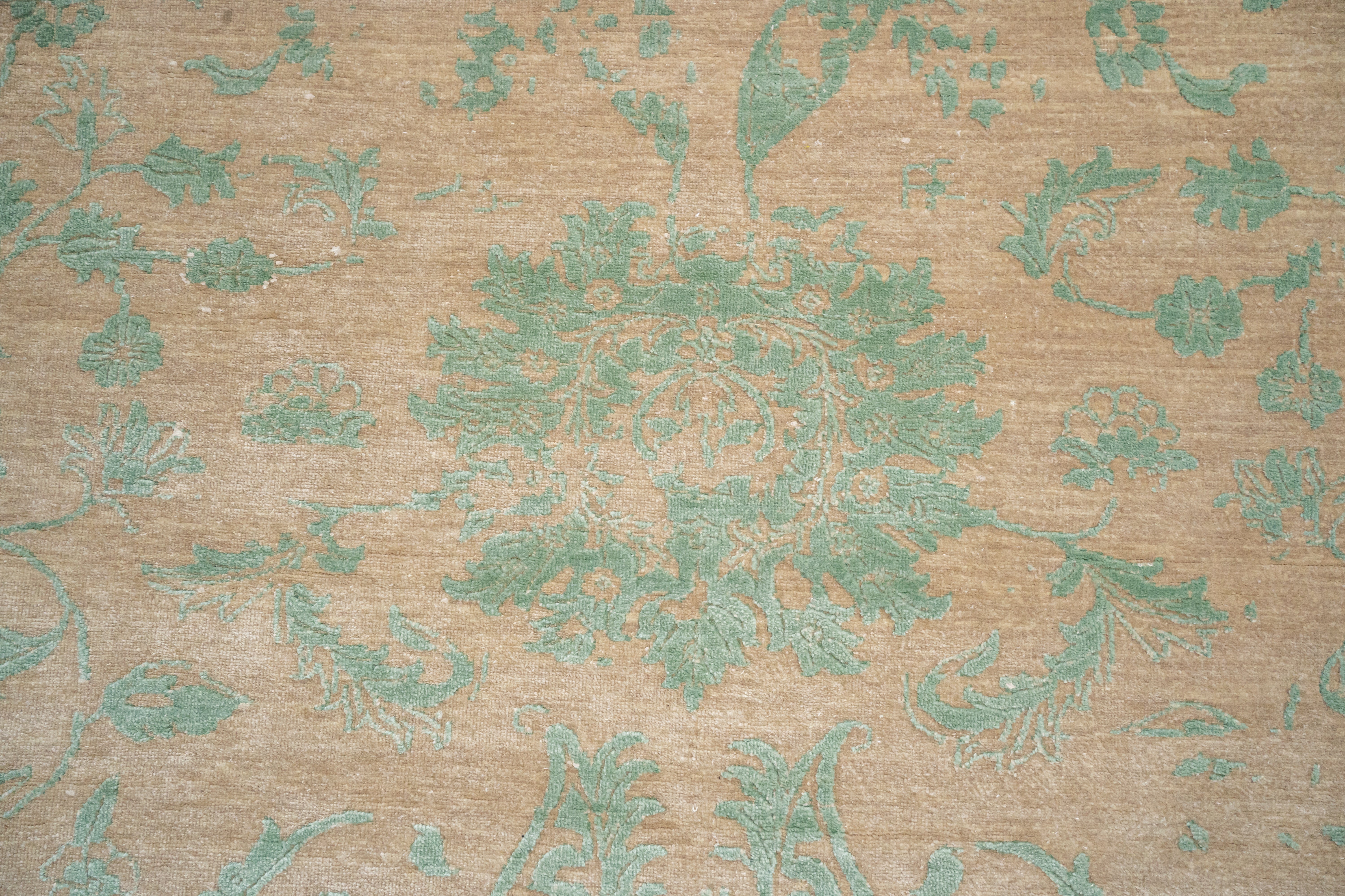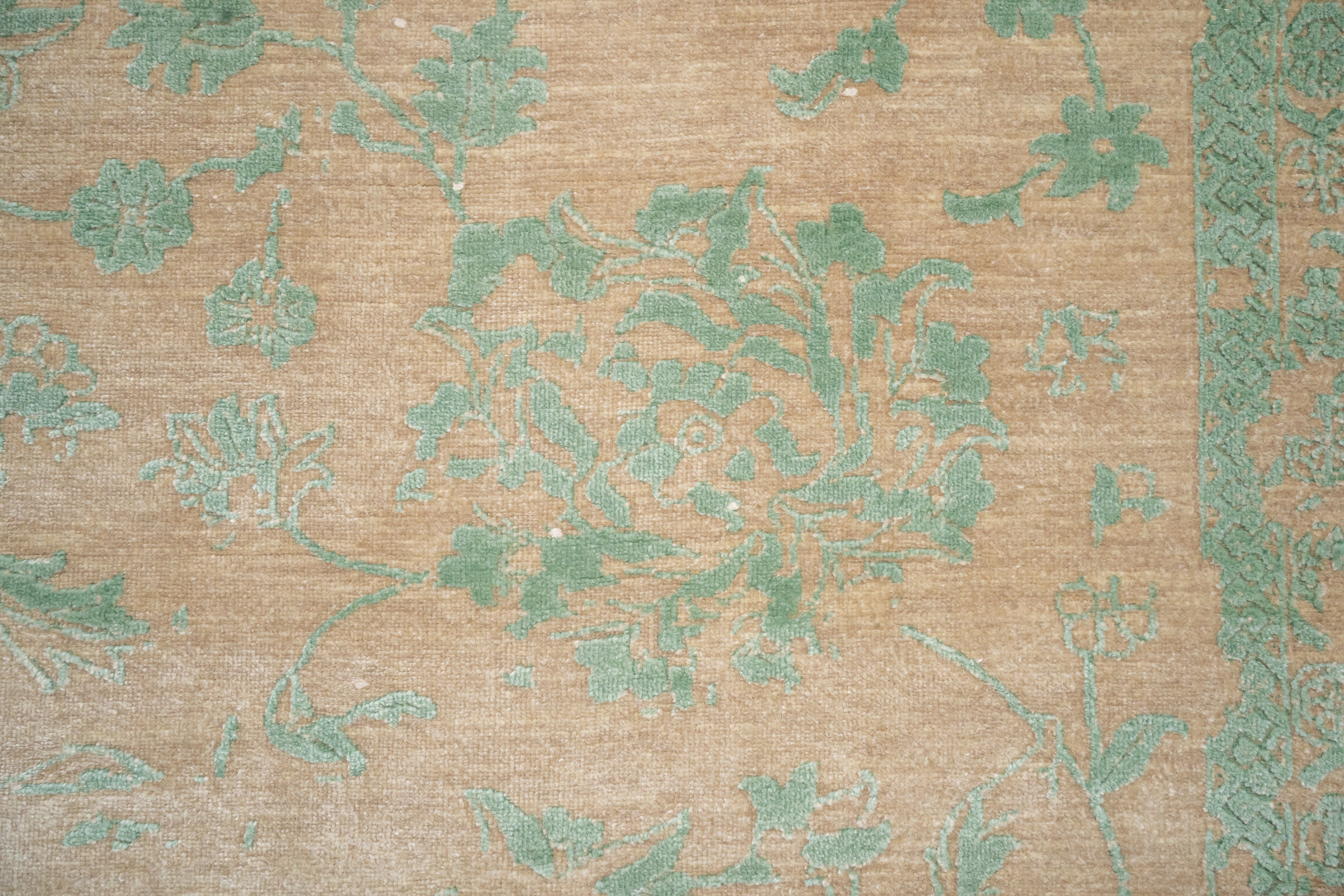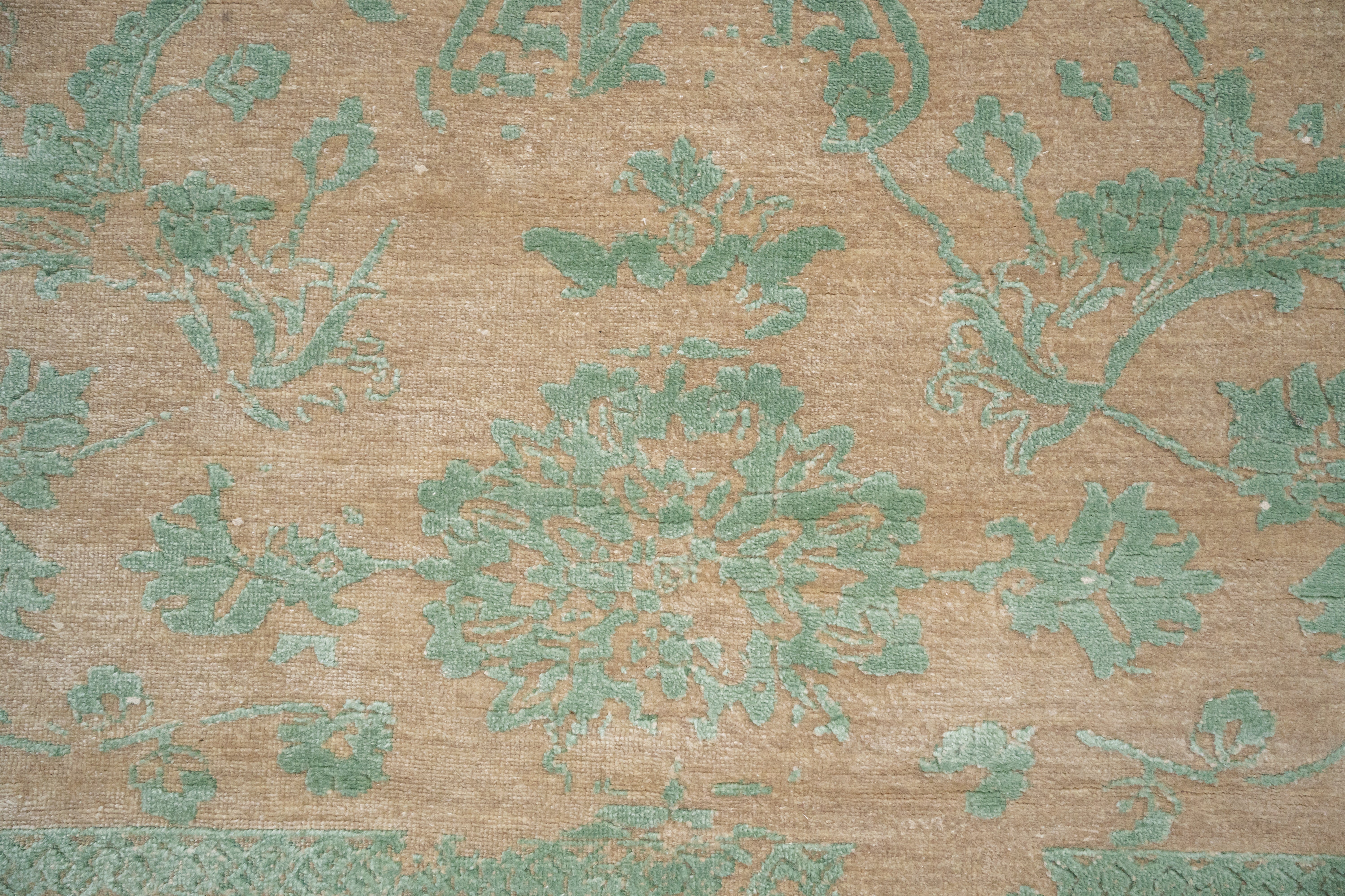 The DIA-1081 JK-A carpet reflects understated modern elegance with its Khaki & Dolphin Gray tones. Its 10 x 14 ftscale makes it perfect for spacious interiors, bringing both warmth and contemporary sophistication. Hand-knotted in Wool & Viscose, the rug combines durability with a soft, lustrous texture, making it a timeless choice for refined living spaces.