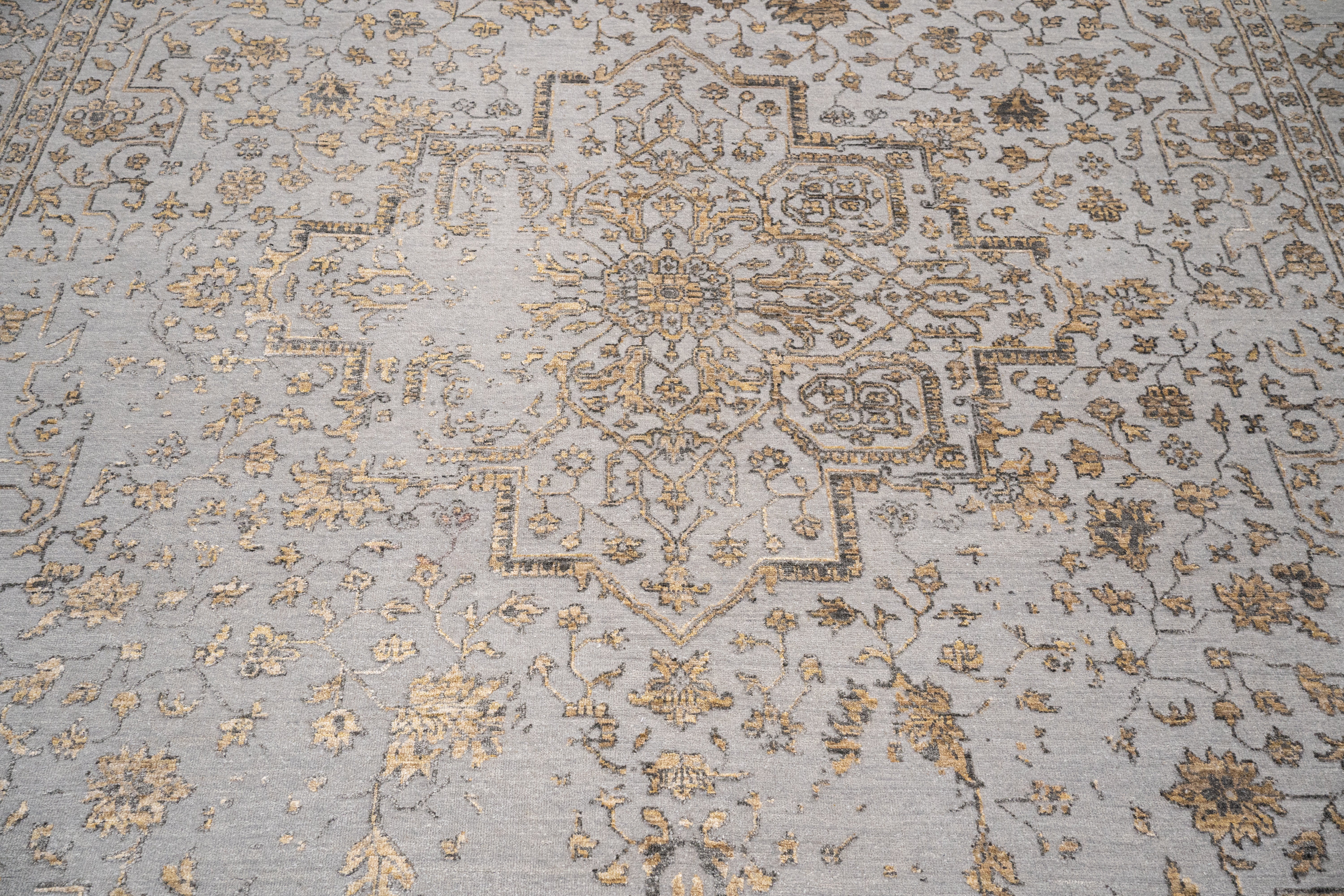 The color palette of Silver Chalice, Pale Taupe, and Dark Liver delivers a grounded elegance—cool and neutral yet full of depth. This muted harmony allows the intricate Serapi pattern to shine with quiet sophistication, making it an ideal statement piece for both classic and modern interiors.