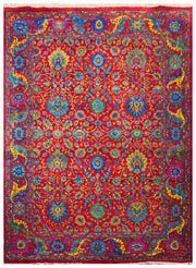 Handknotted Carpet, DIA: 449 IMPERIAL SCARLET BLOOM, Imperial Red, Cosmic Cobalt, & Selective Yellow - 10x14