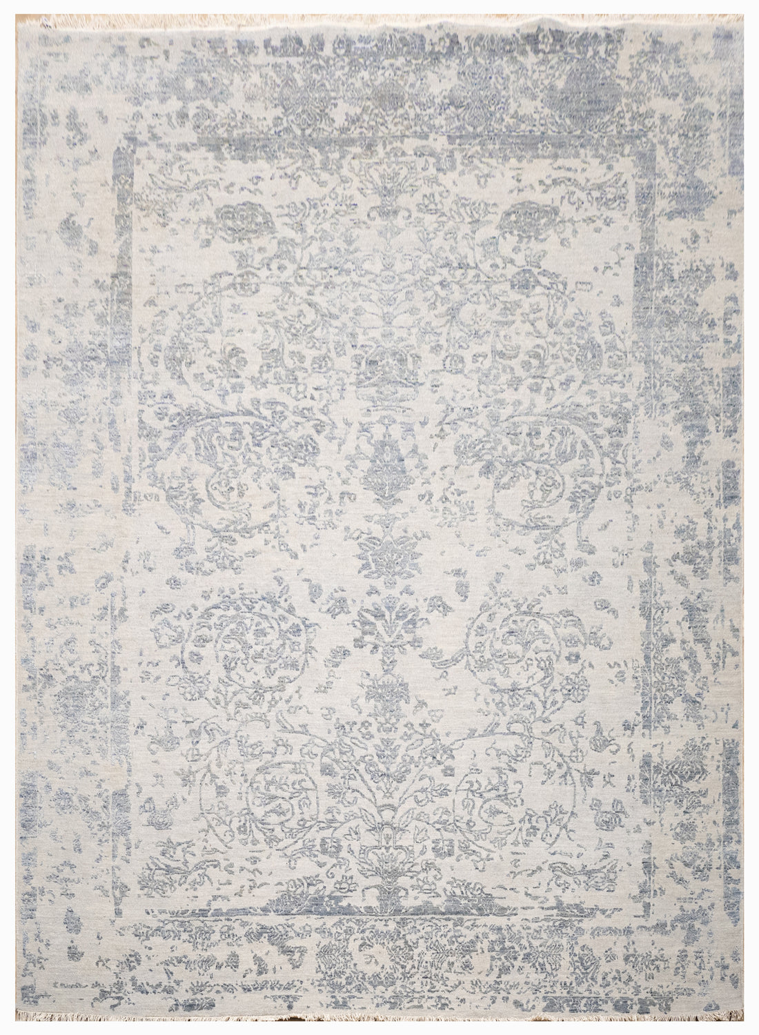 Handknotted Rug DIA- 39 JK ROUND, Silver & Grey - 9x12